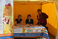 There are some low quality photos of different stalls and their respective stall holders at Pinknic. I was unfortunately unable to identify many of them. I was however able to identify the below image as The University of Sheffield LGBT+ Staff Network.